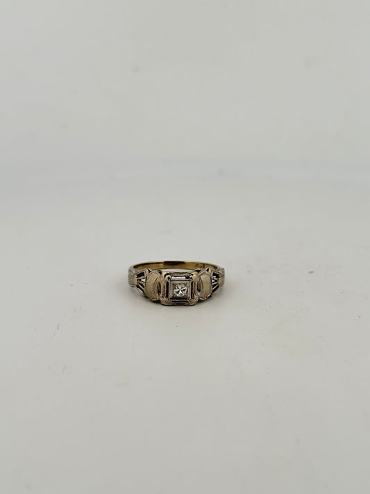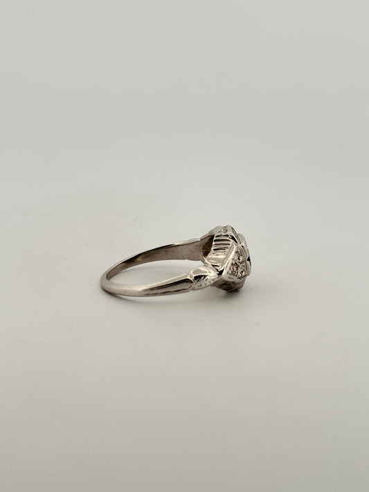 Antique art deco diamond solitaire in 18k white gold