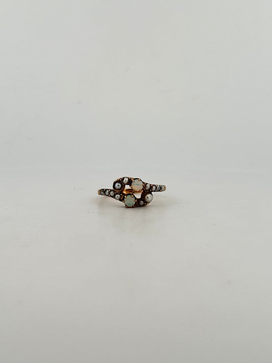 Antique Victorian moonstone cabochon ring in 10k yellow gold