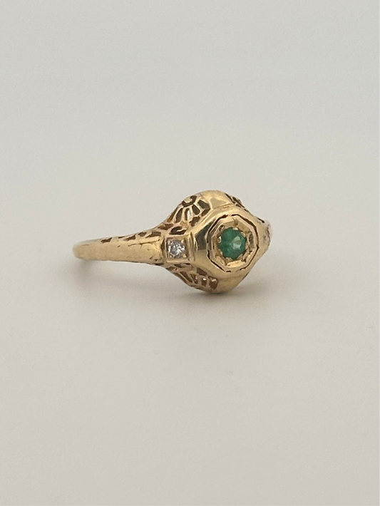 Antique Victorian old mine cut solitaire ring in 14k yellow gold