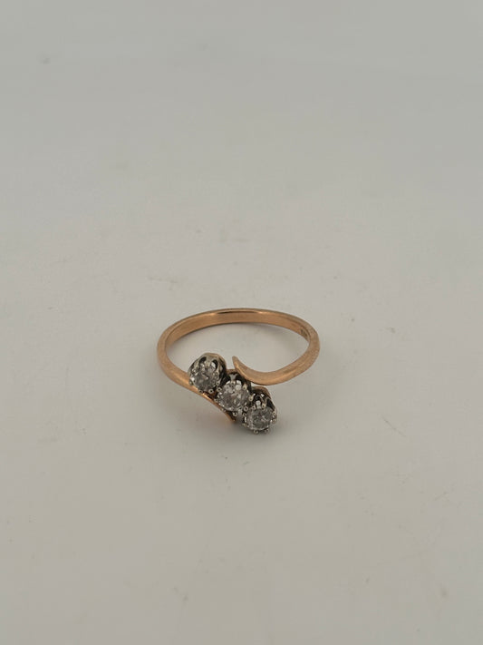 Antique Victorian old mine cut trilogy ring in 14k yellow gold