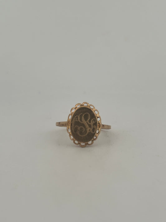 Vintage Victorian revival signet ring circa 1970s in 10k yellow gold