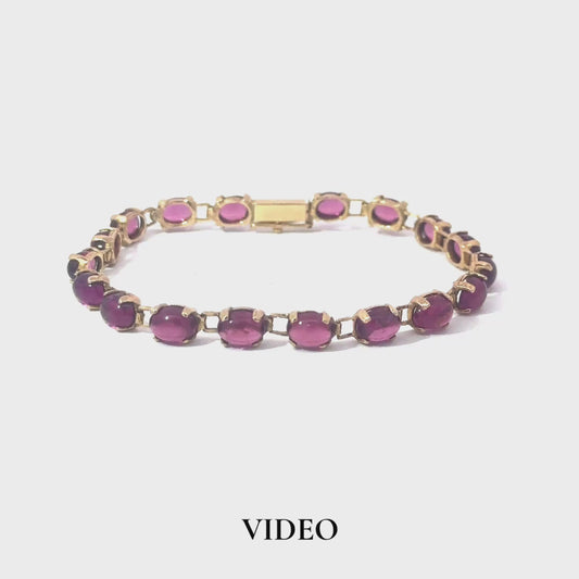Vintage rhodalite garnet cabochon tennis bracelet in 14k yellow gold