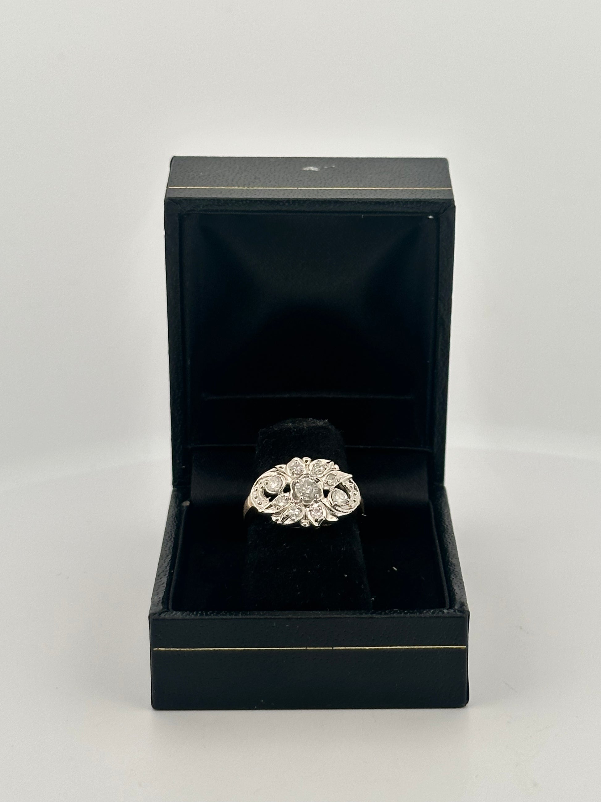 Antique natural diamond dinner ring in 14k gold
