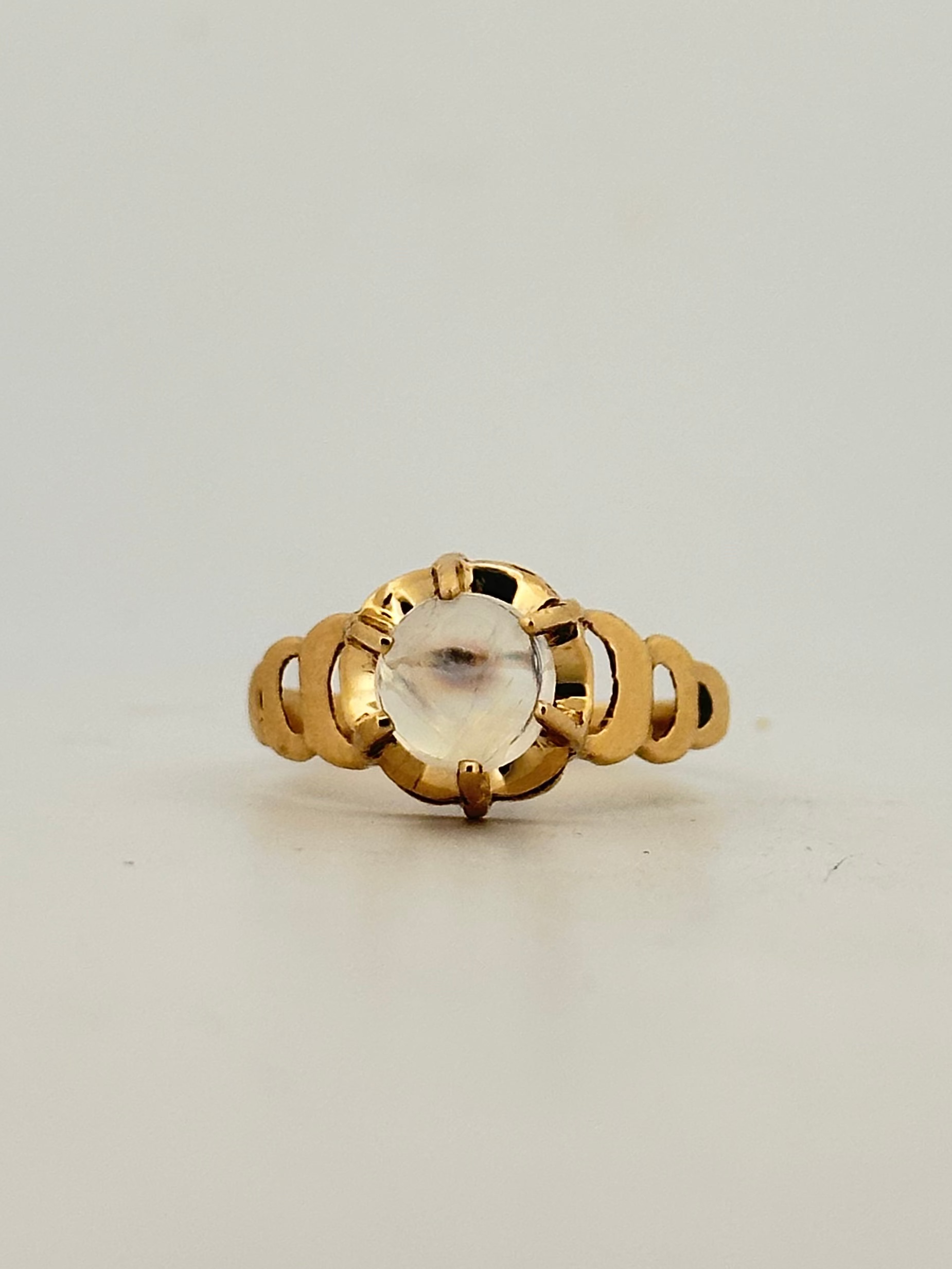 Antique Victorian moonstone cabochon ring in 10k yellow gold
