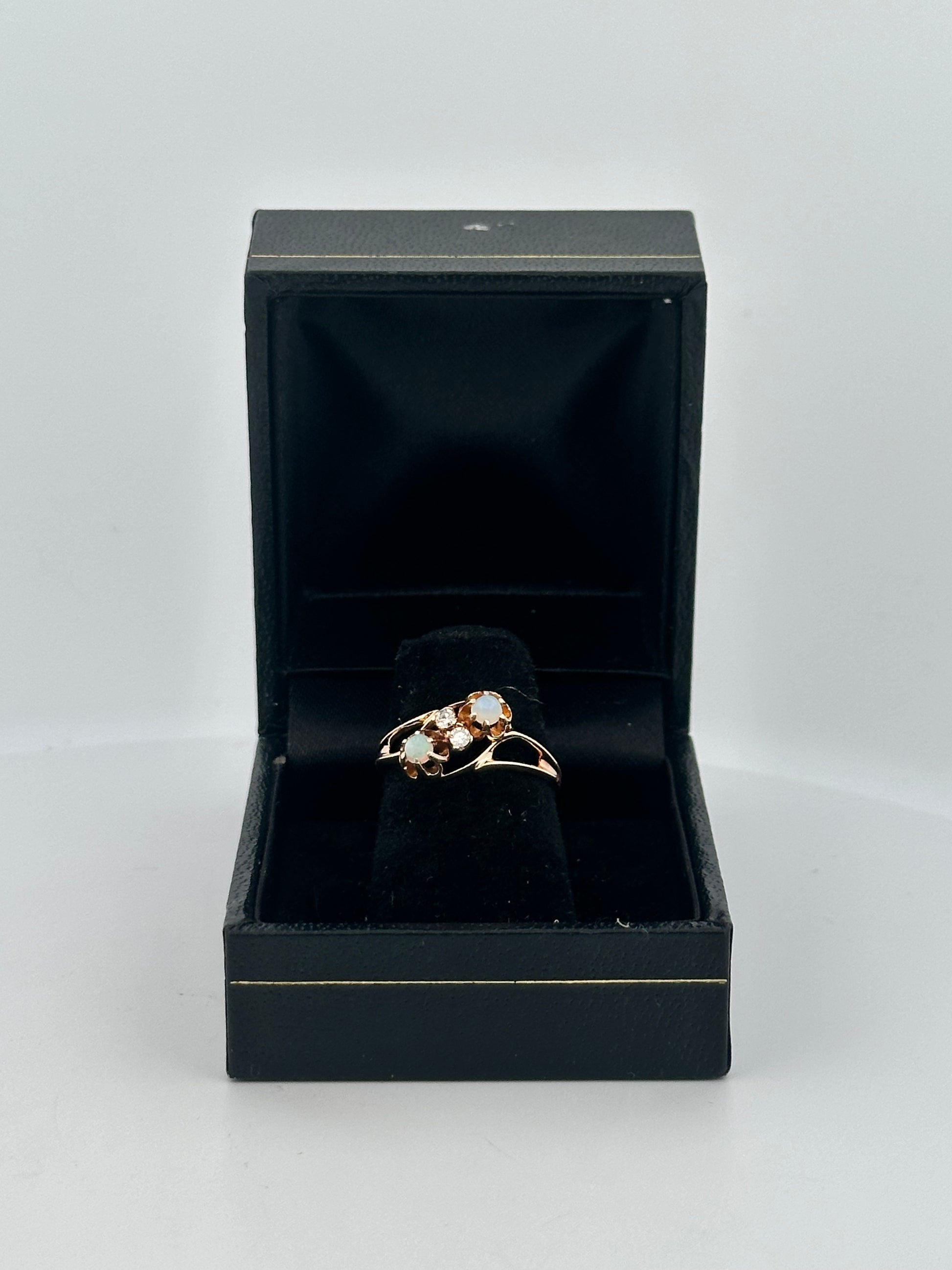 Antique Victorian opal and natural antique single cut diamond ring set in 10k yellow gold.