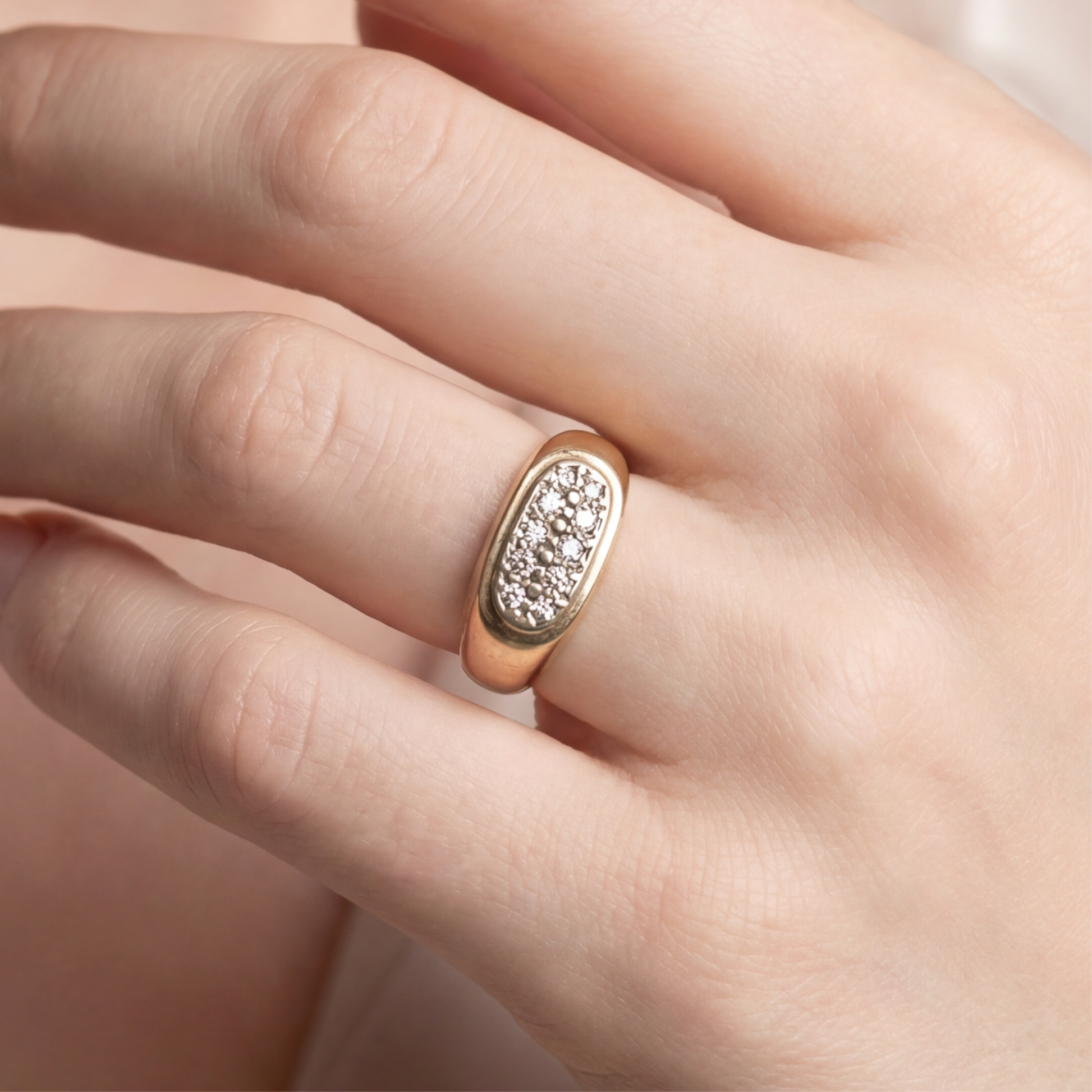 Diamond cluster signet ring in 10k yellow gold