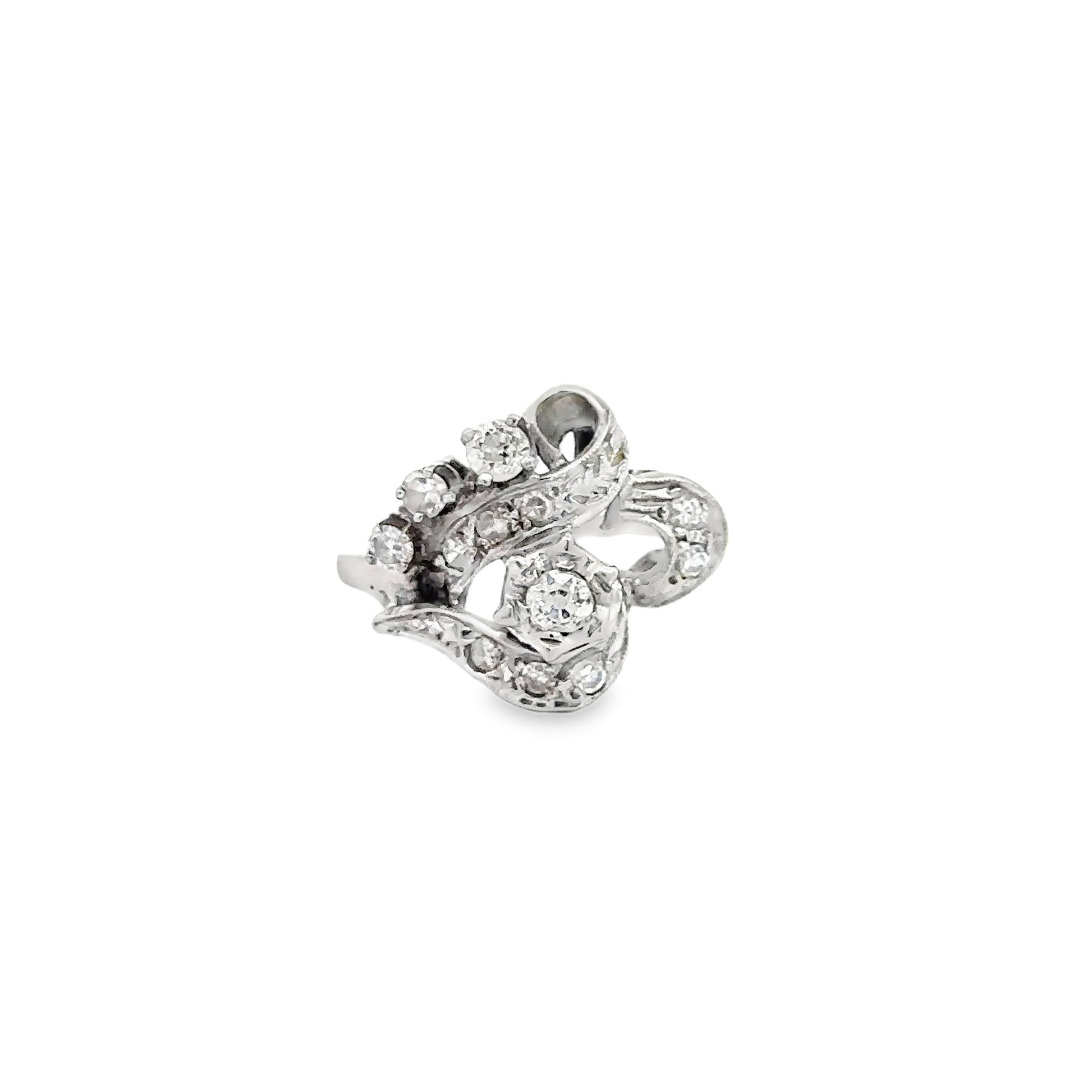 Vintage natural diamond art déco cocktail ring in 14k white gold. Getting old mine cut and antique single cut natural diamonds - approximately .65ct total