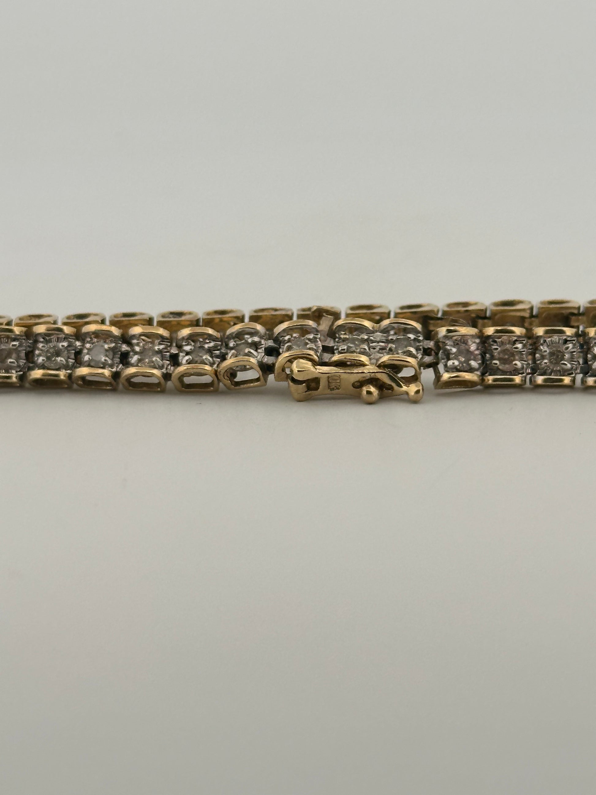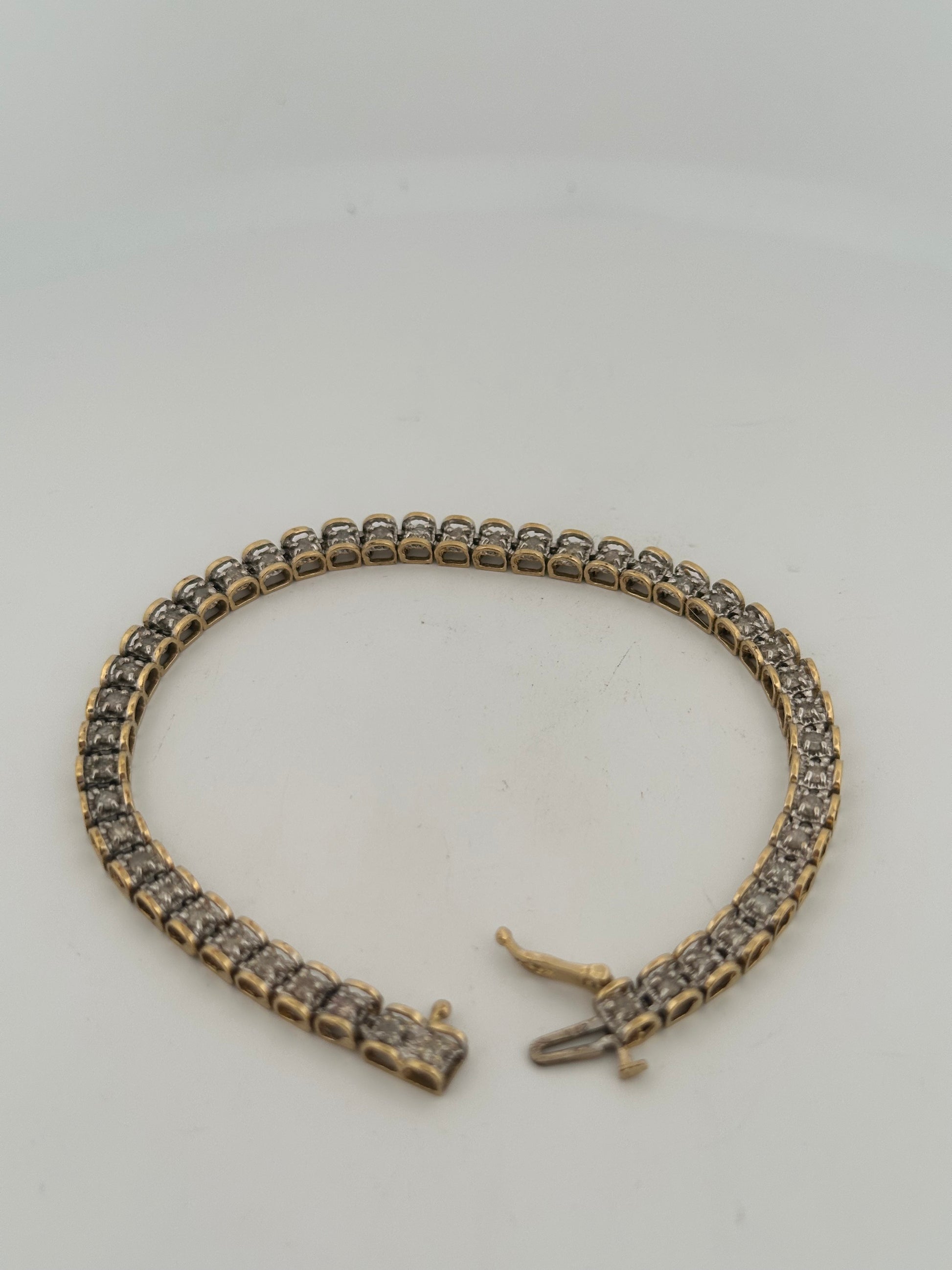 Vintage natural diamond tennis bracelet in 10k yellow gold with white gold setting on each .05ct natural brilliant cut diamond - 2.35ct (approximately) total.