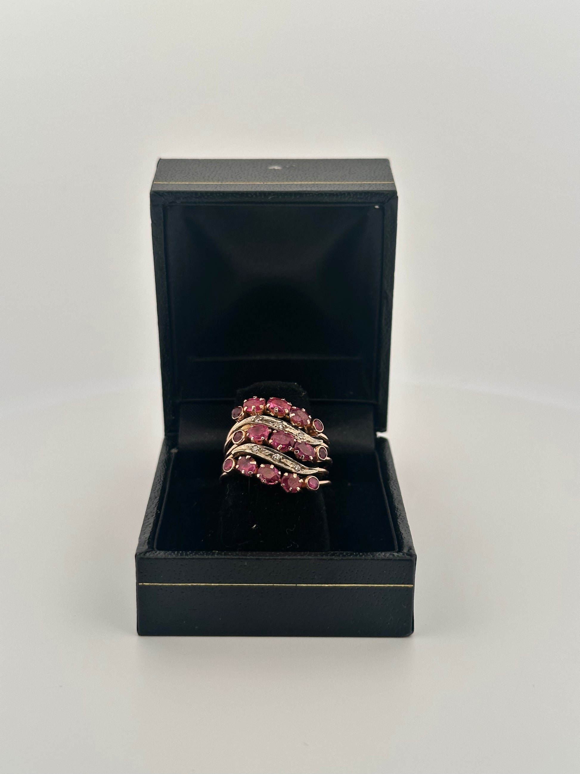 Vintage Natural Ruby and Diamond five band cocktail ring - 14k rose gold